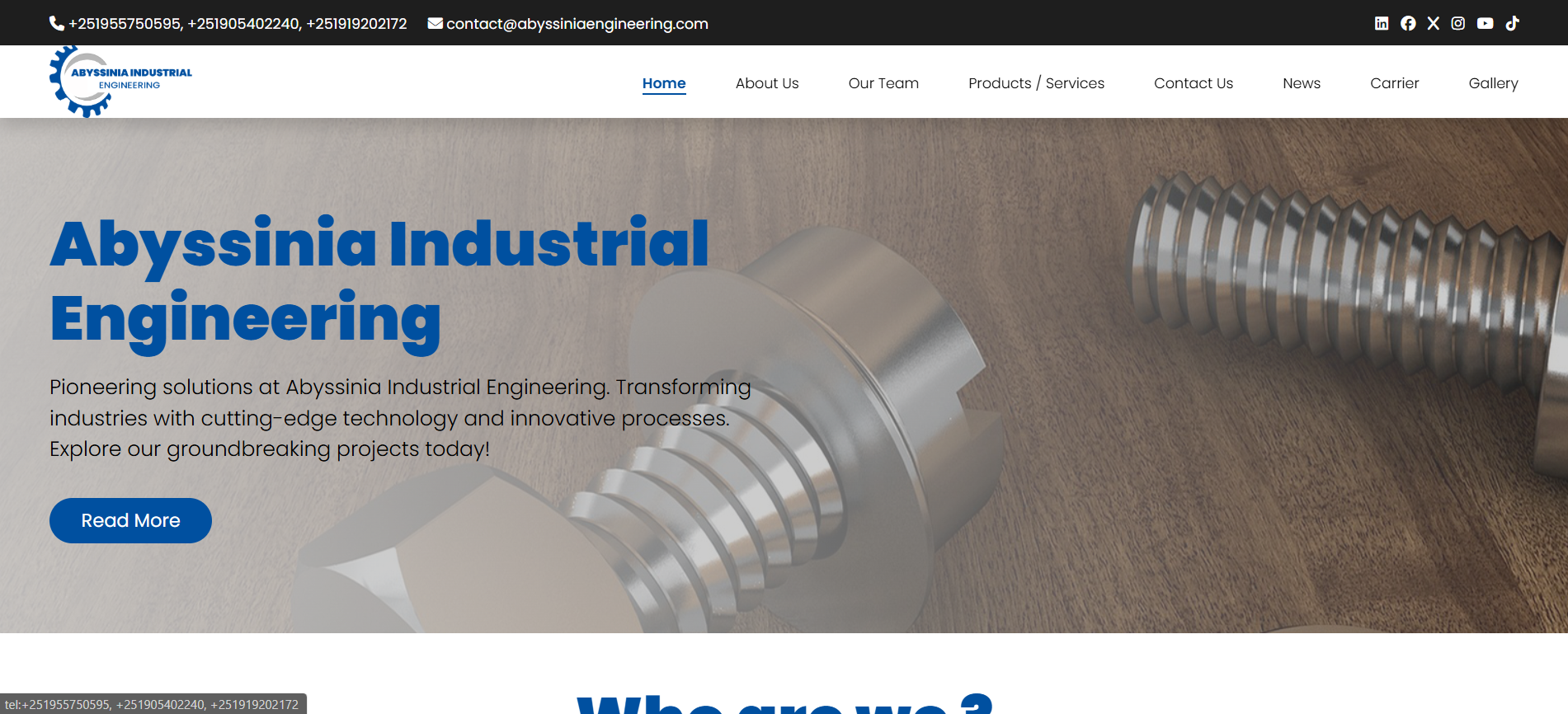 A professional website for Abyssinia Engineering, an engineering firm in Ethiopia, showcasing their services, projects, and company information.